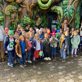 Am Donnerstag fand unser erster Ausflug zusammen mit unserer Partnerklasse statt. Es ging in den Reptilienzoo nach Forchtenstein. Pünktlich um 8 Uhr holten uns die VS St. Egyden und Edi mit dem Bus in Theresienfeld ab. Auf unserem Weg zum Reptilienzoo konnten wir vom Bus aus die Burg Forchtenstein bestaunen. Beim Zoo angekommen ging es gleich mit der Führung los. Wir lernten spannende Fakten über die Königskobra, die Python und Kaimane. Am allermeisten begeisterte uns das Chamäleon Felix. Wir durften es sogar von Nahem beobachten und zuschauen, als Felix eine Heuschrecke mit seiner langen Zunge fing. Ein weiteres Highlight waren die beiden Schlangen, die wir angreifen durften. Manche von uns hatten sogar den Mut, die Schlange ganz alleine zu halten. Das war ein Erlebnis!