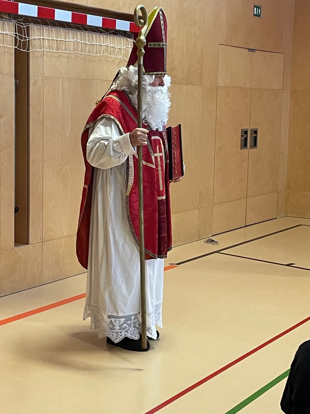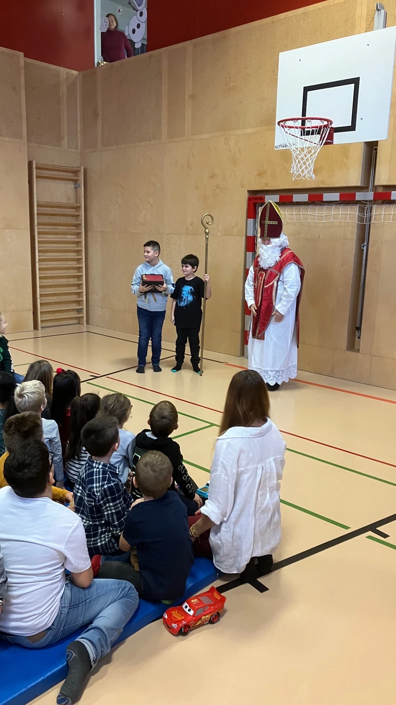 Alle Klassen versammelten sich gemeinsam im Turnsaal und die ersten Klassen hatten jeweils einen Beitrag - ein Gedicht, einen Tanz und ein Lied - für die Nikolausfeier vorbereitet.